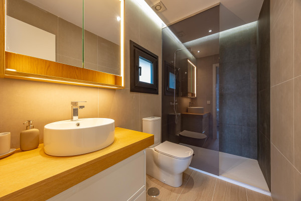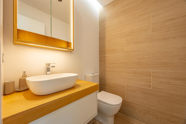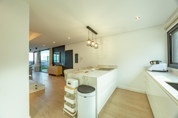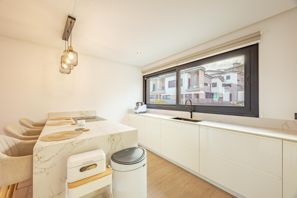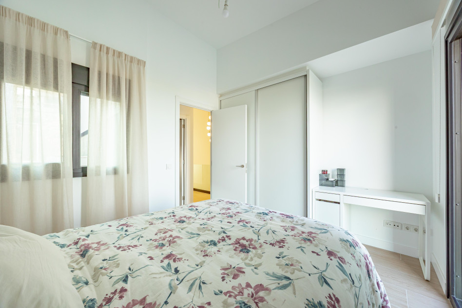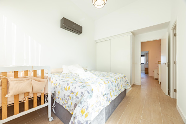 La planta se completa con una cocina nueva, completamente equipada con electrodomésticos de alta gama, un aseo y aire acondicionado para garantizar el máximo confort.