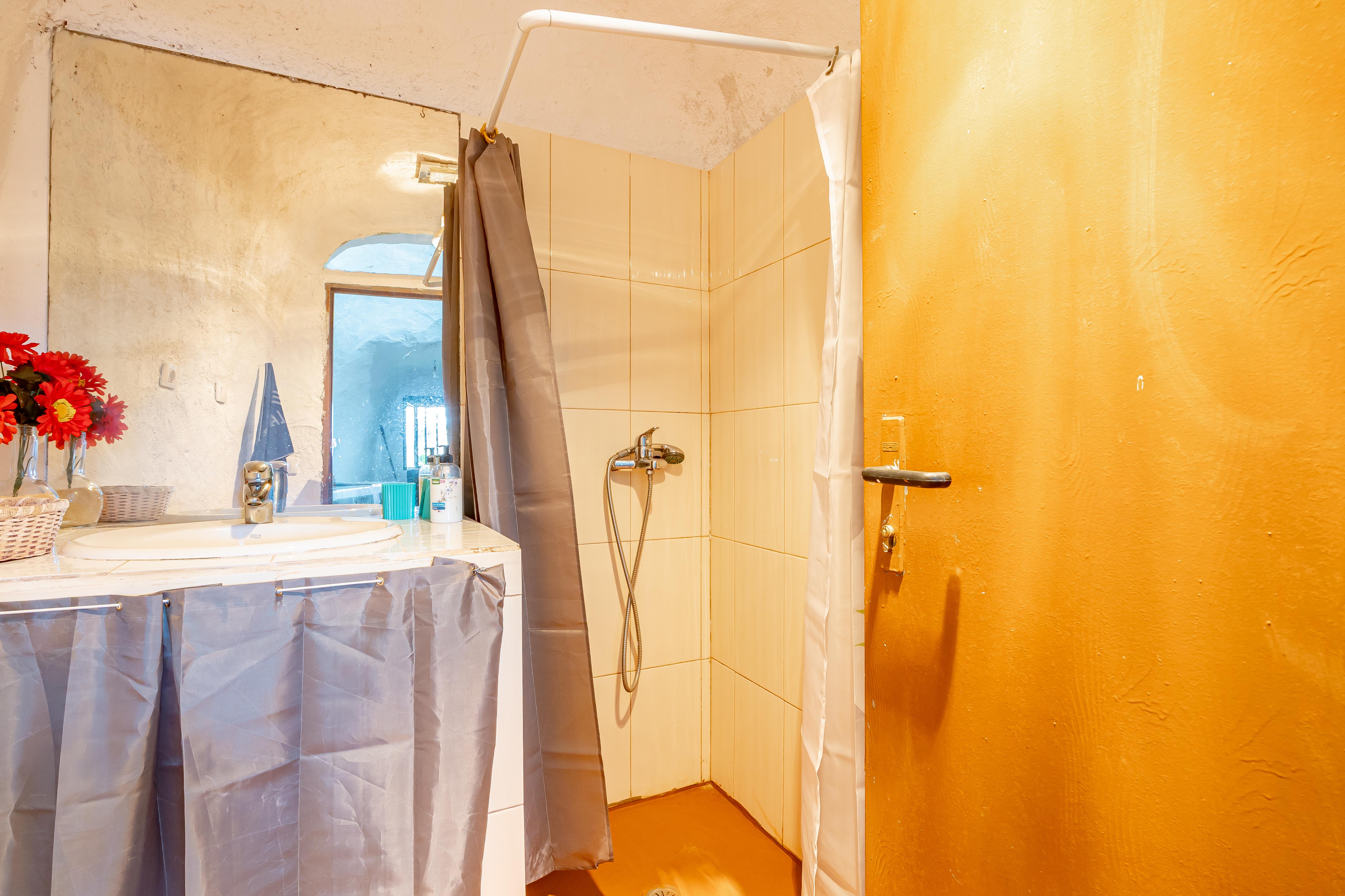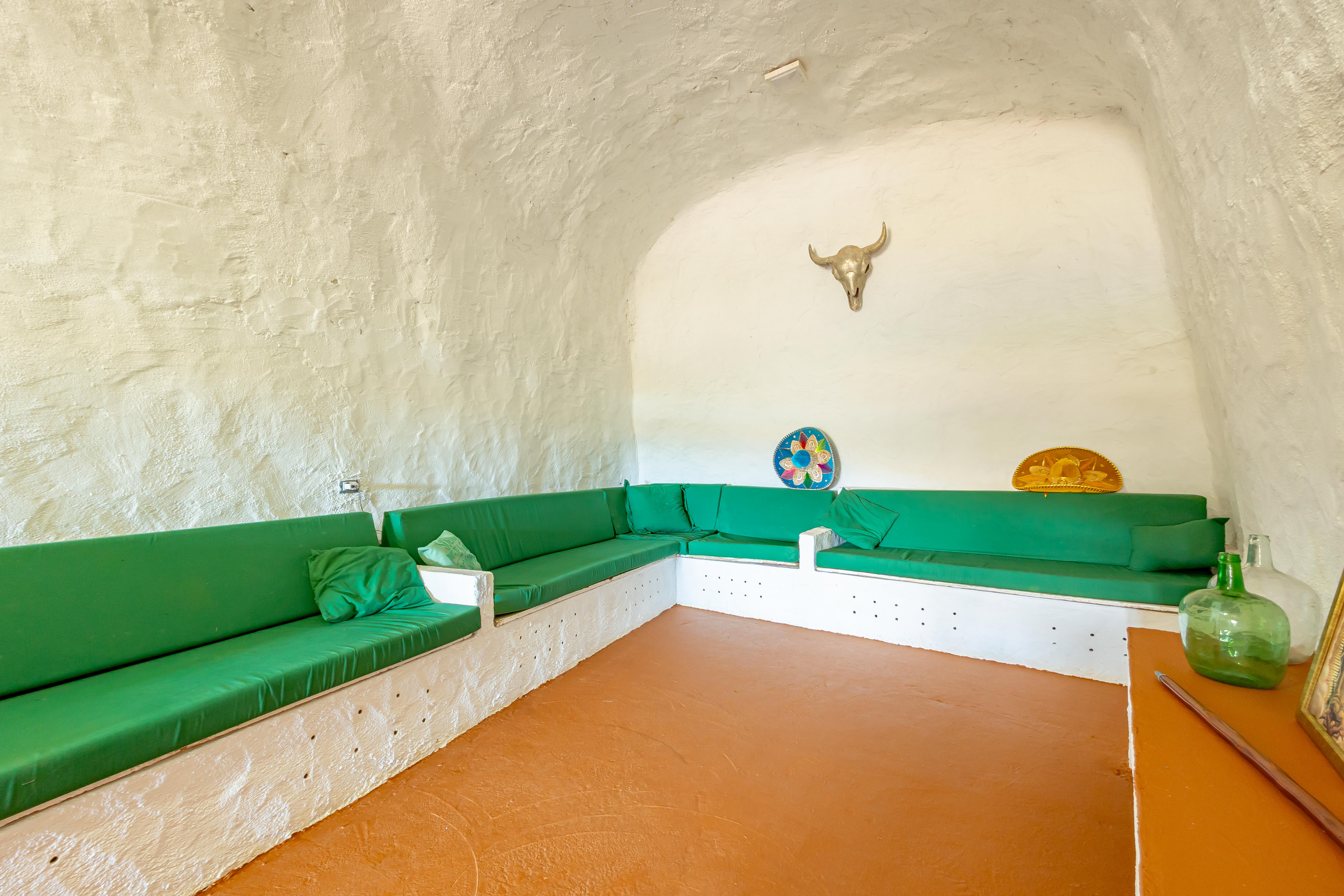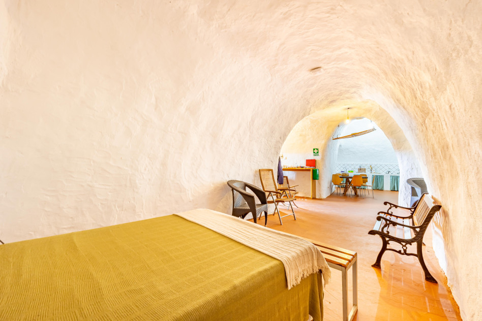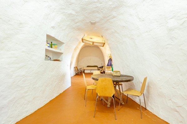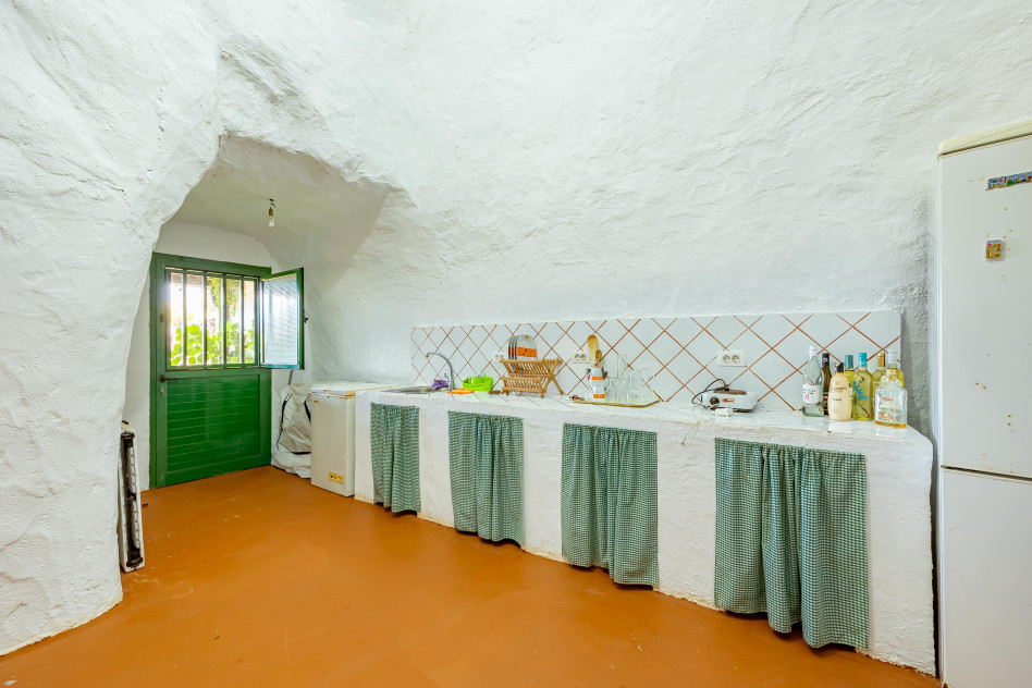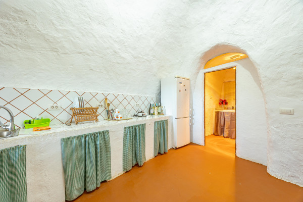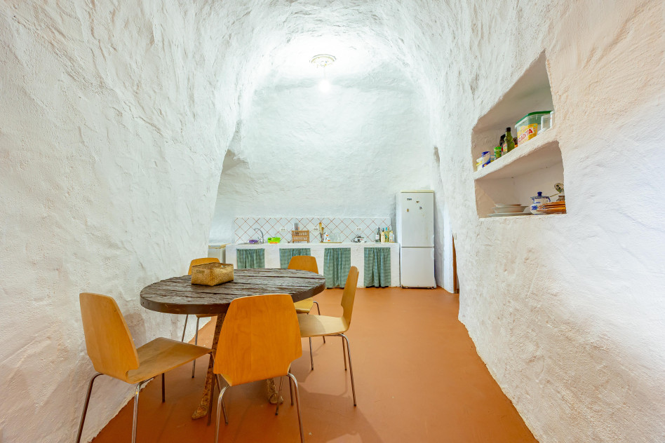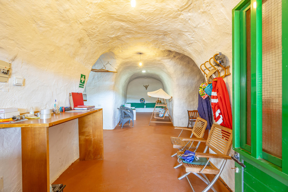 Incluye una casa cueva habitable, compuesta por salón, cocina, dormitorio, baño y terraza exterior con barbacoa y horno de leña, así como una nave cueva destinada a almacenaje agrícola. Este espacio residencial permite el uso como vivienda, apoyo a la explotación o proyecto de turismo rural.