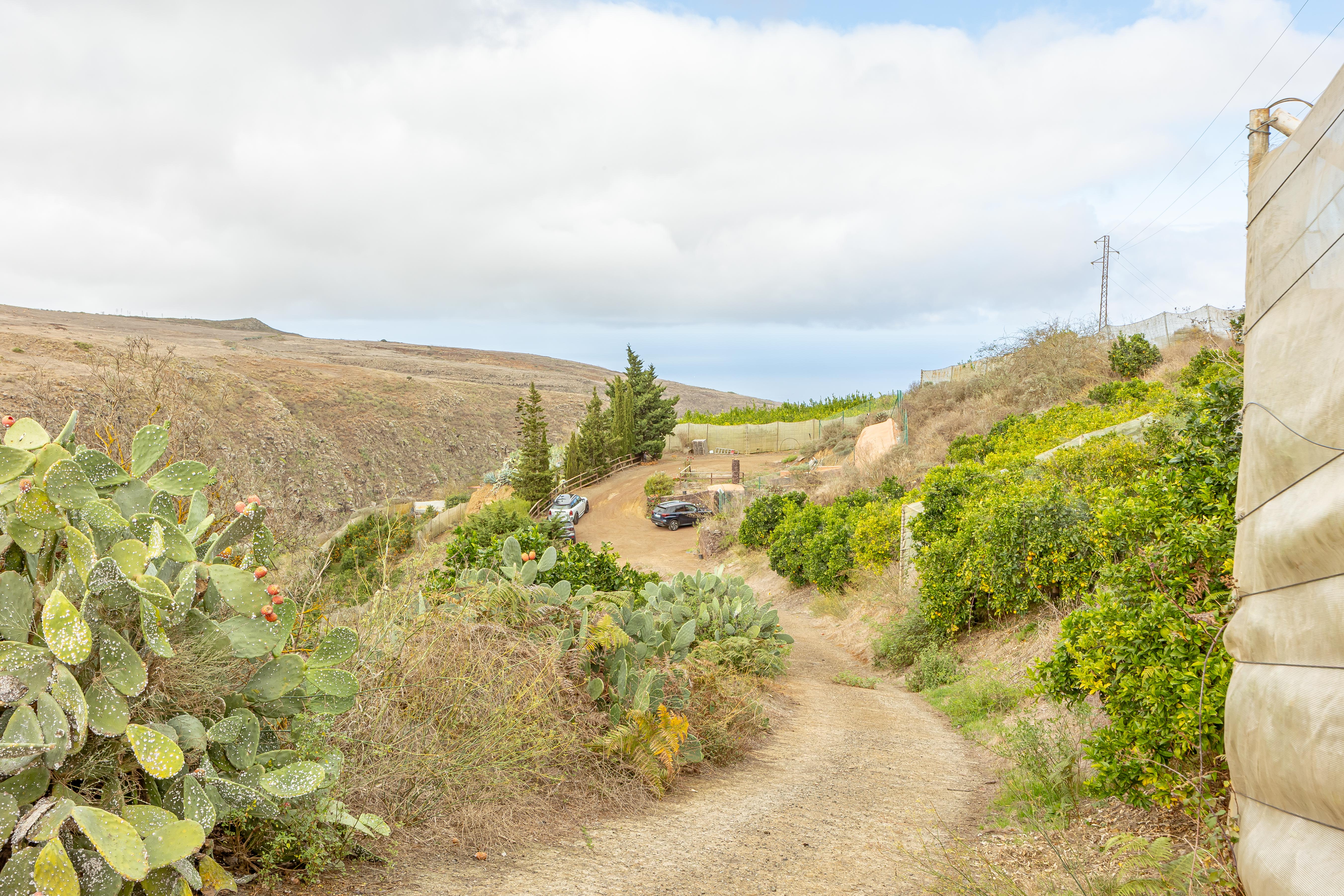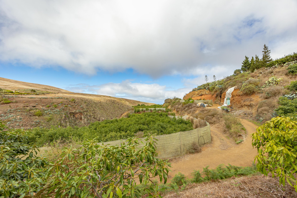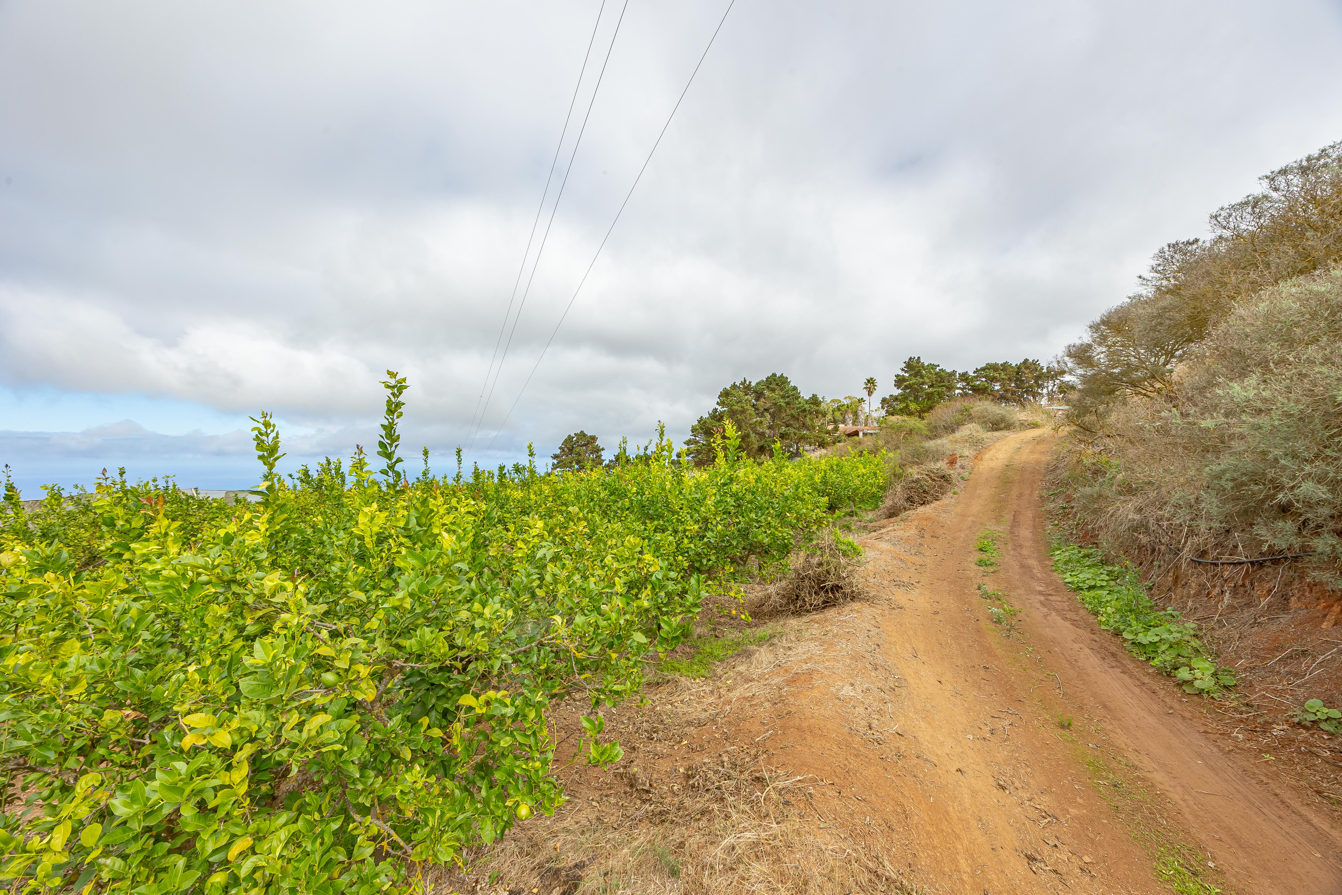 Actualmente la finca se encuentra en plena fase de desarrollo, con plantaciones jóvenes de unos nueve años, lo que significa que están entrando en su periodo óptimo de producción. Existen bancales estructurados con cultivos de aguacate, naranjo, limonero, limero, mandarino, papas y coliflor, así como zonas de huerta y frutales según el desglose de recintos SIGPAC (superficies de cítricos: 1,1435 ha; frutales: 1,0300 ha; huerta: 1,1809 ha).