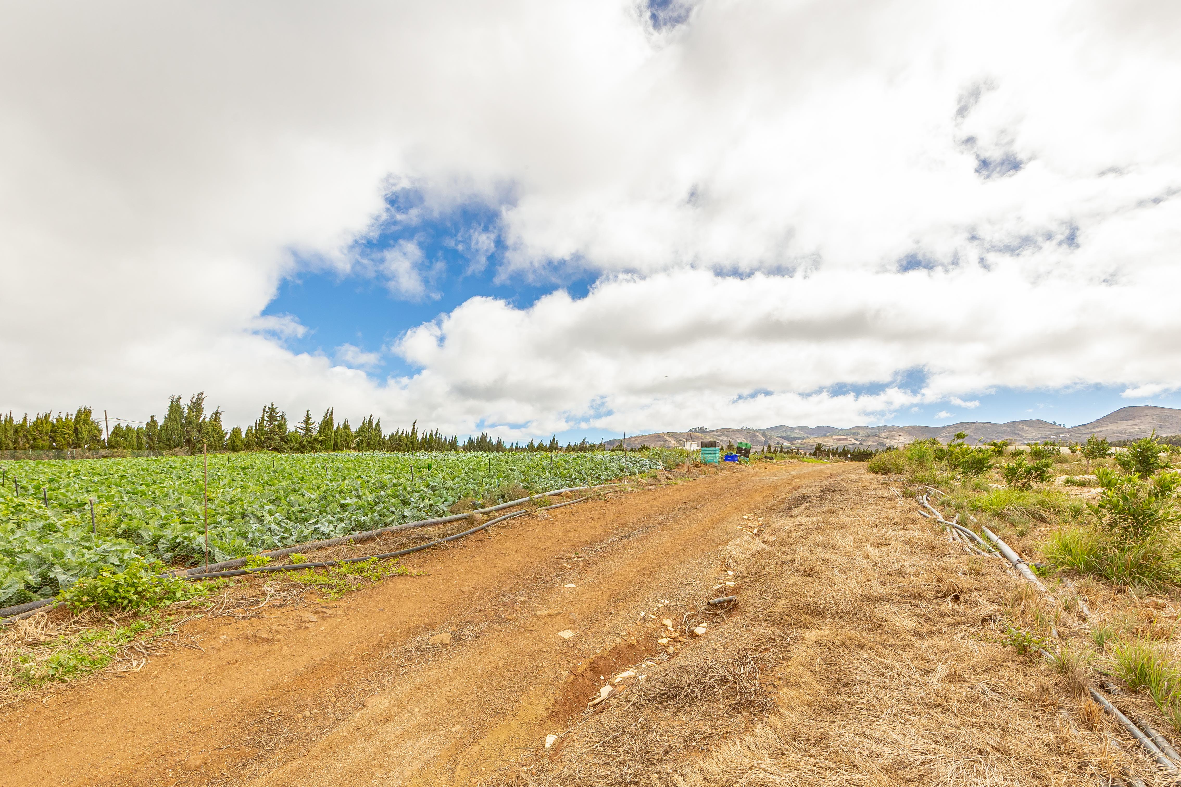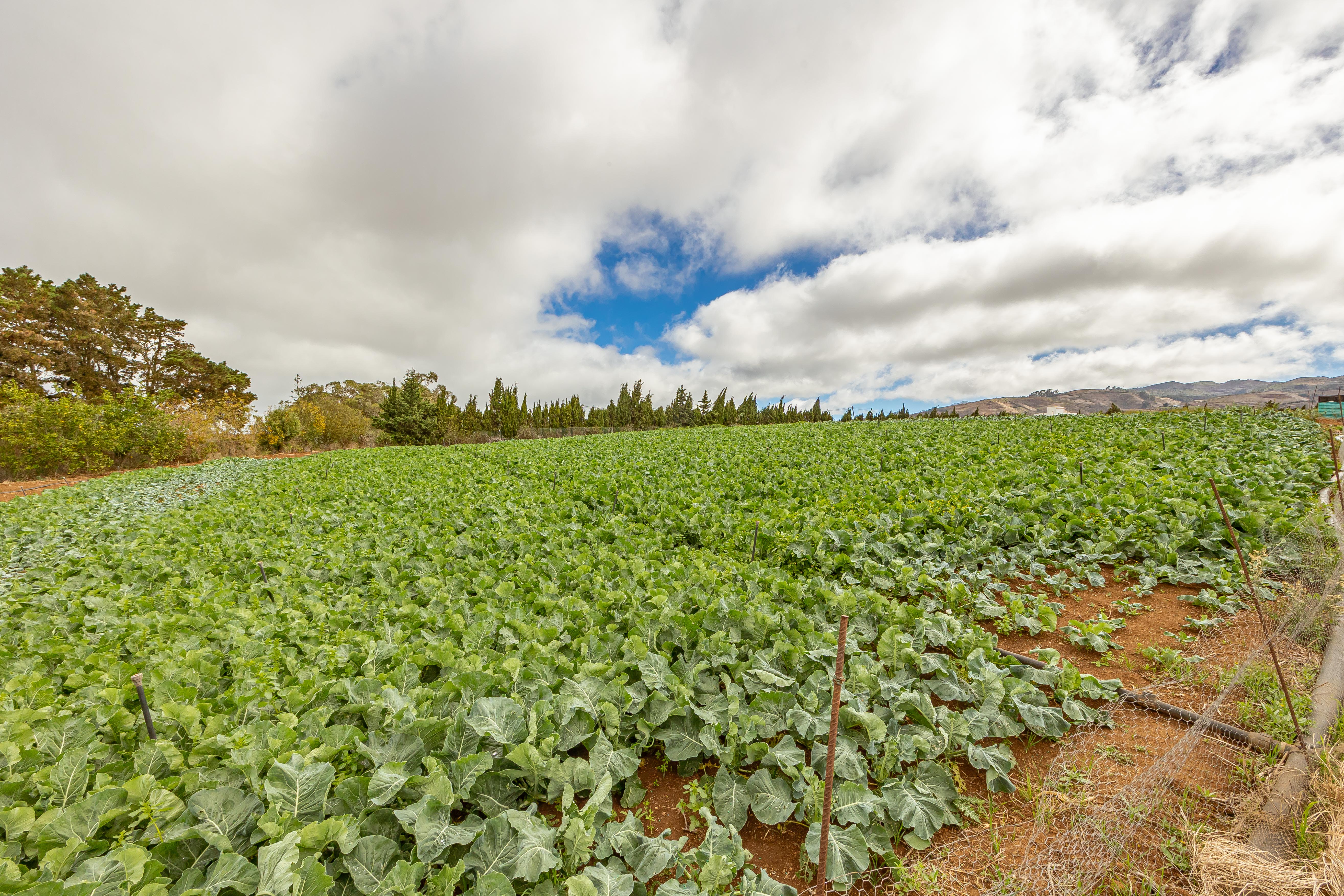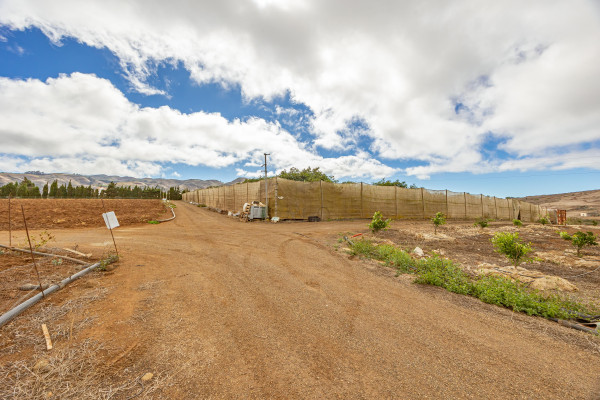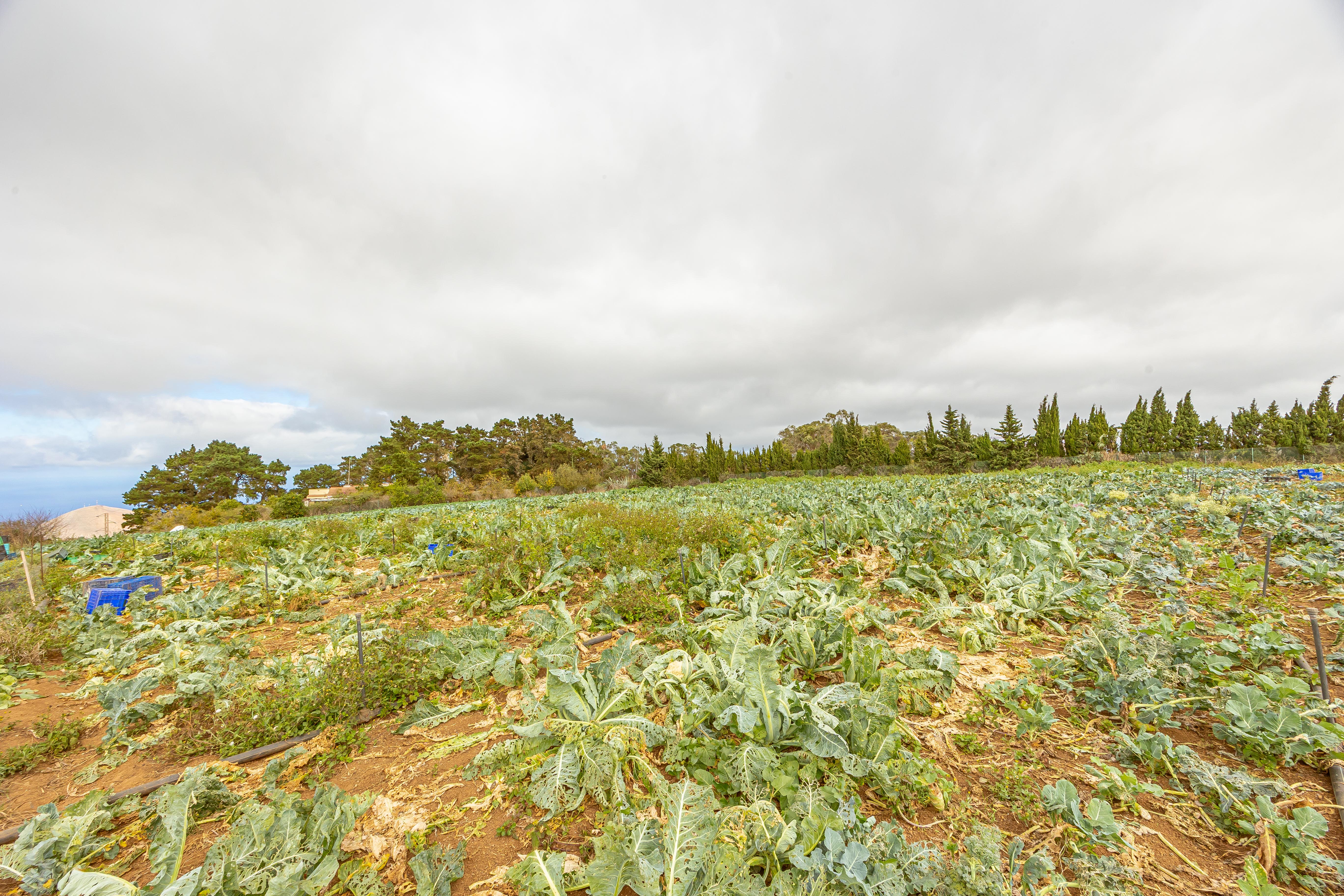 Actualmente la finca se encuentra en plena fase de desarrollo, con plantaciones jóvenes de unos nueve años, lo que significa que están entrando en su periodo óptimo de producción. Existen bancales estructurados con cultivos de aguacate, naranjo, limonero, limero, mandarino, papas y coliflor, así como zonas de huerta y frutales según el desglose de recintos SIGPAC (superficies de cítricos: 1,1435 ha; frutales: 1,0300 ha; huerta: 1,1809 ha).