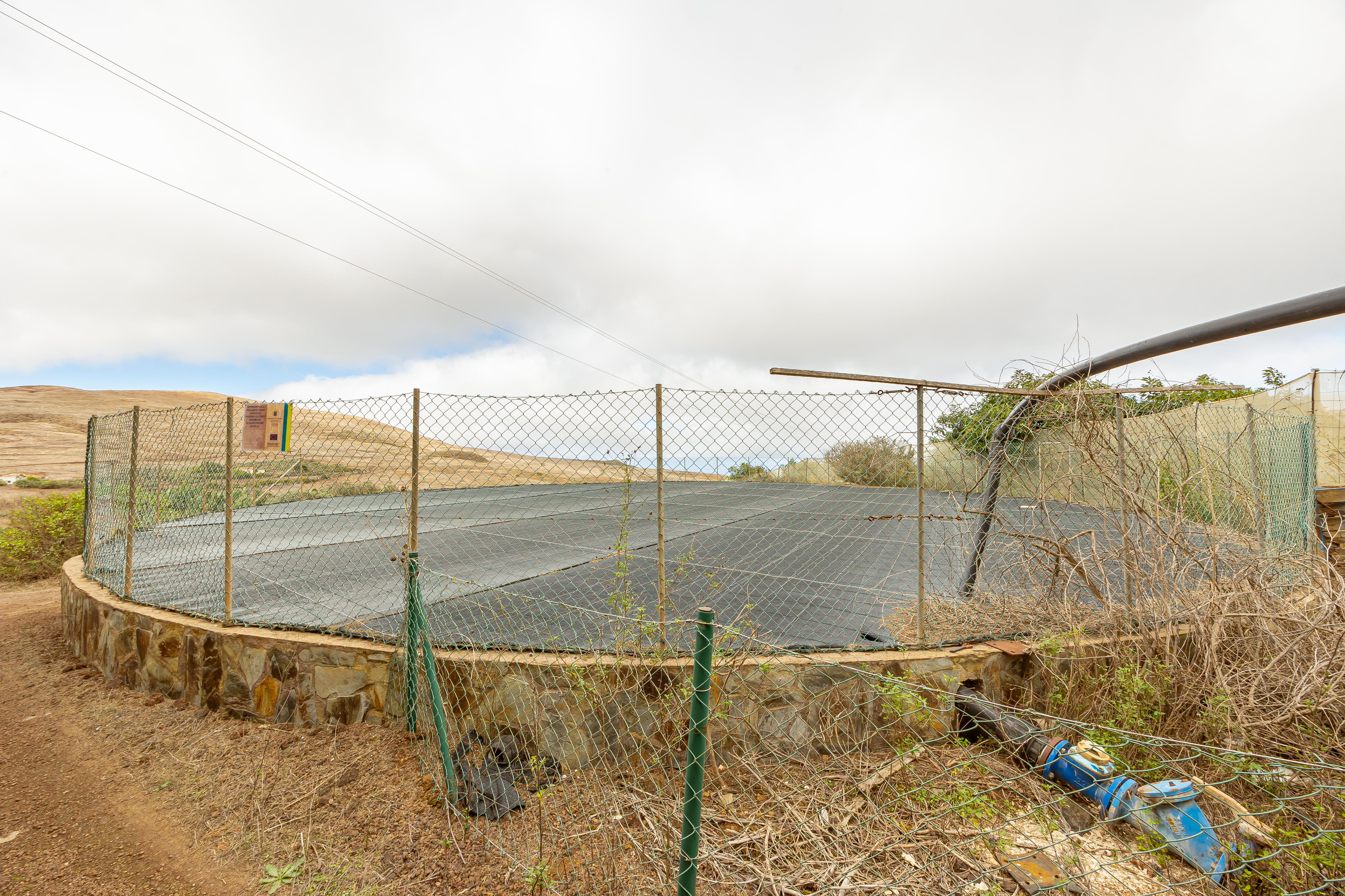 Dispone de dos depósitos de agua, uno superficial y otro subterráneo, con sistema de bombeo y derechos de agua de la Comunidad de Aguas San José (Caideros – Gáldar), asegurando el suministro para las plantaciones. Además, la finca cuenta con alumbrado en su totalidad, permitiendo incluso trabajos en horario nocturno.