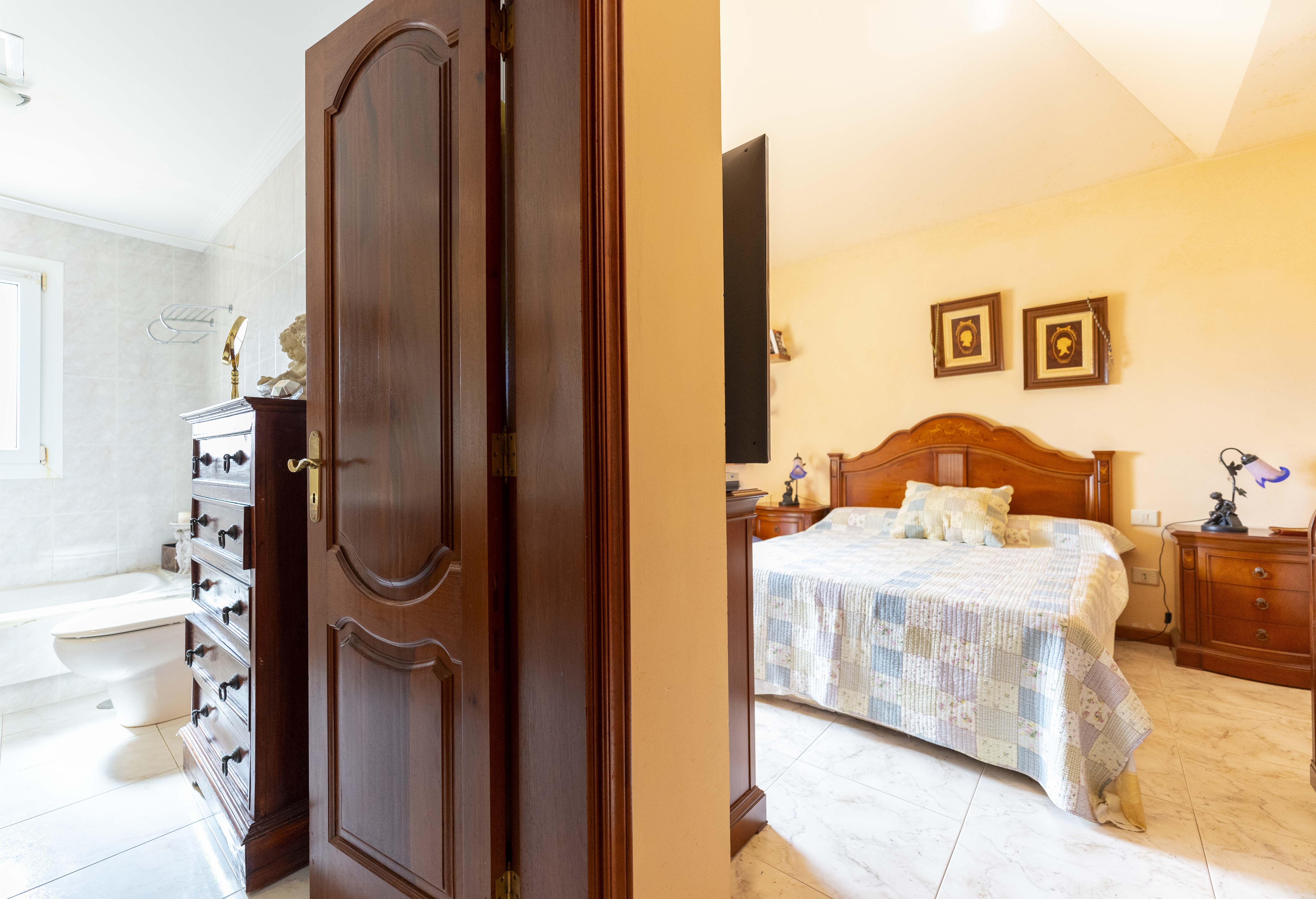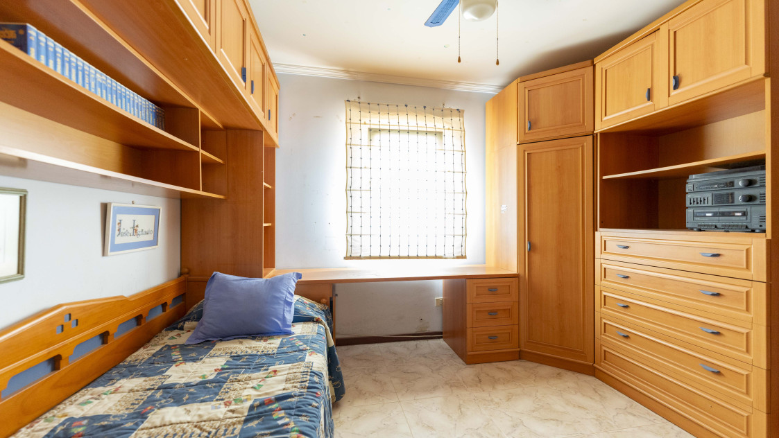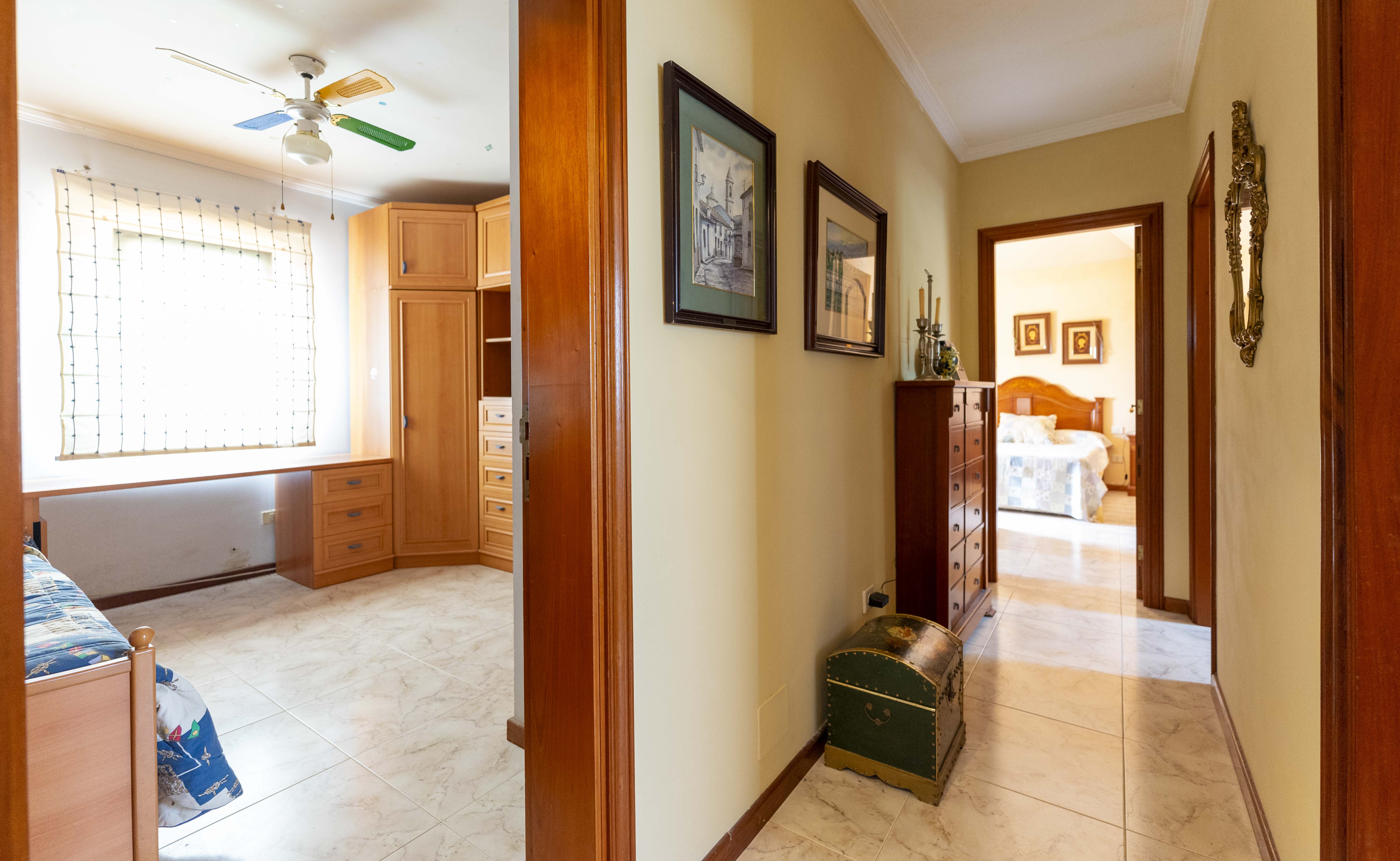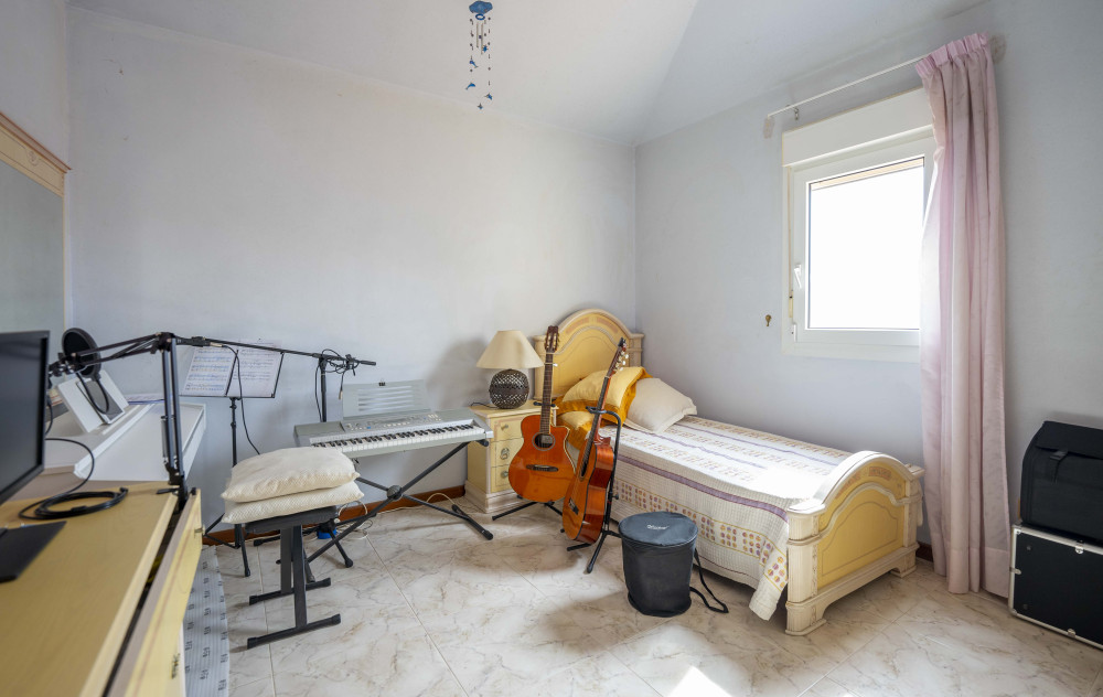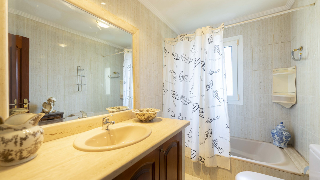 En la planta superior tenemos 4 habitaciones, 1 suit con vestidor y terraza con vistas al mar, dos habitaciones dobles y una simple, además de dos baños, teniendo la posibilidad de unir un baño con el dormitorio principal.