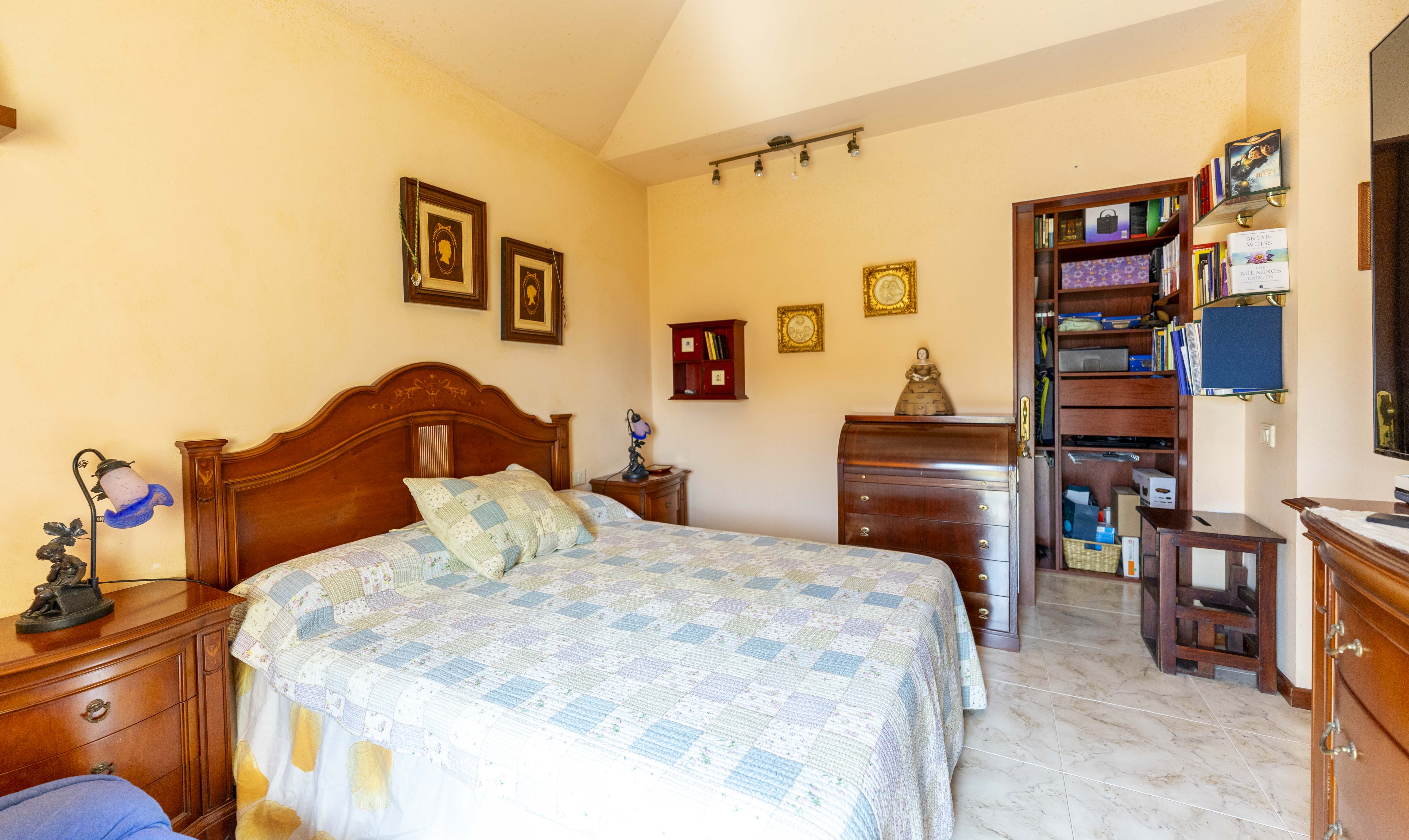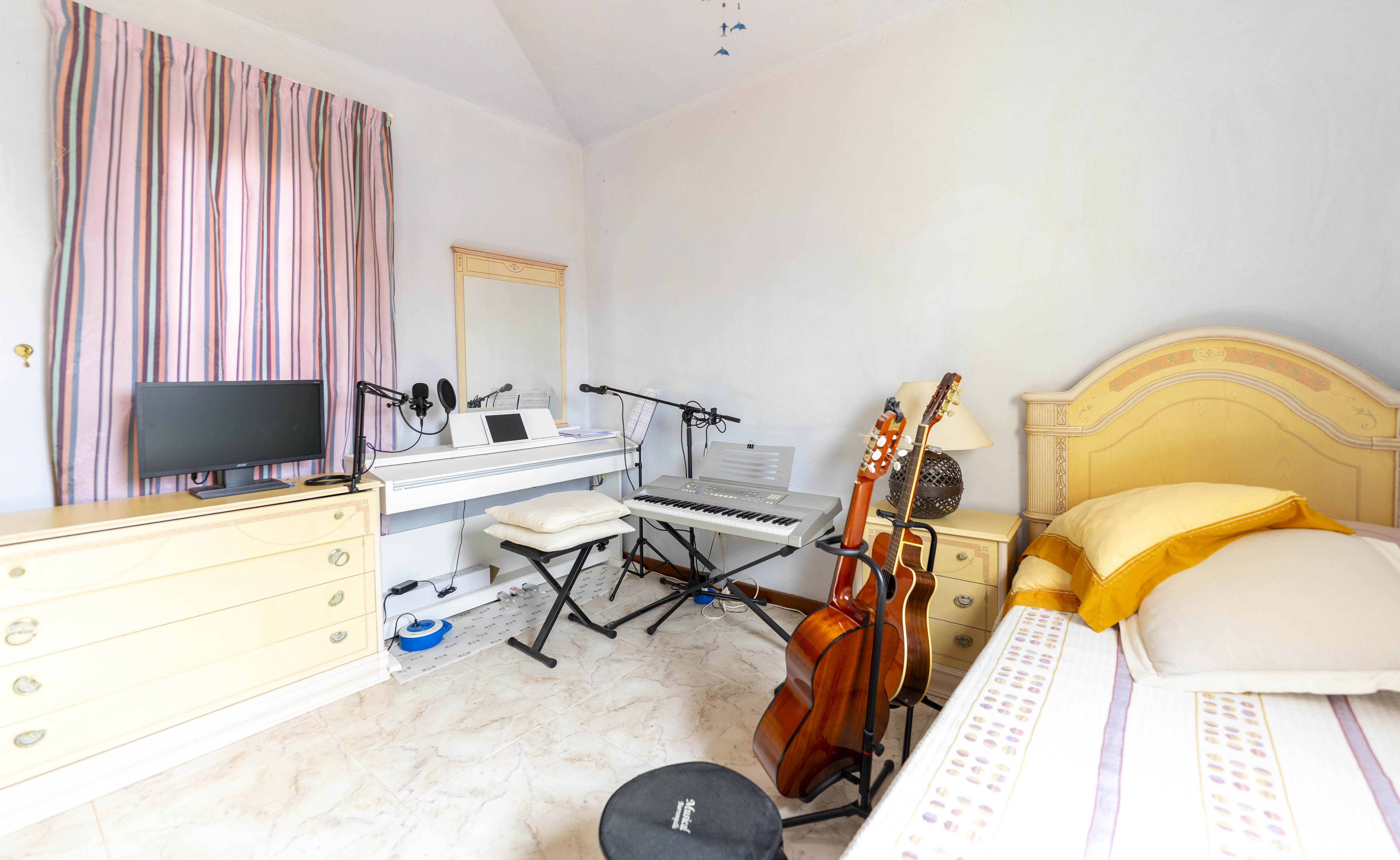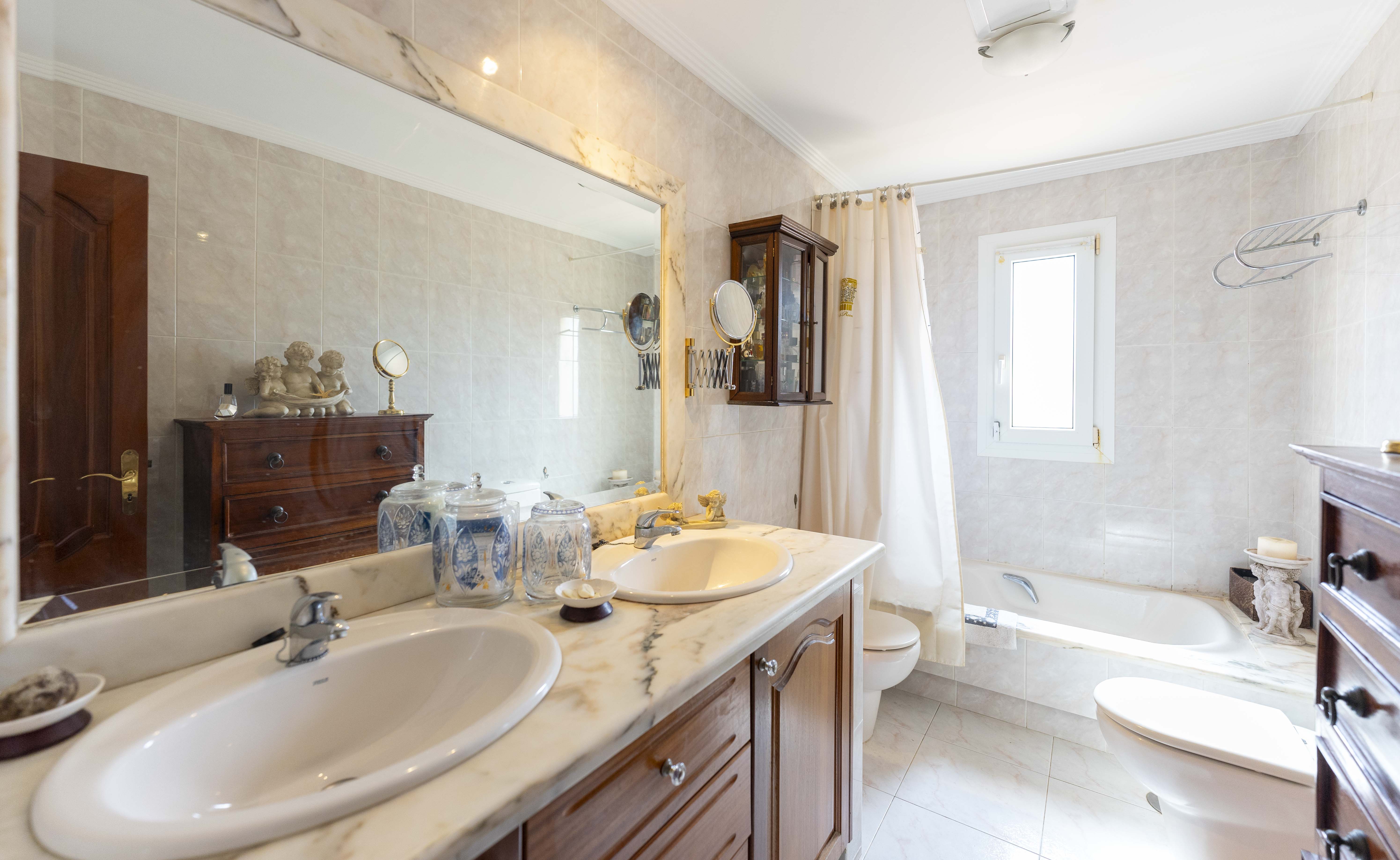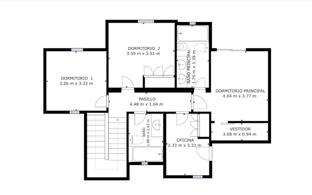 En la planta superior tenemos 4 habitaciones, 1 suit con vestidor y terraza con vistas al mar, dos habitaciones dobles y una simple, además de dos baños, teniendo la posibilidad de unir un baño con el dormitorio principal.