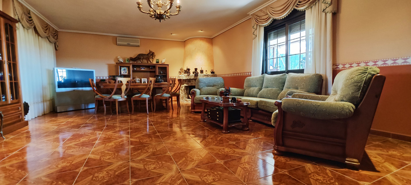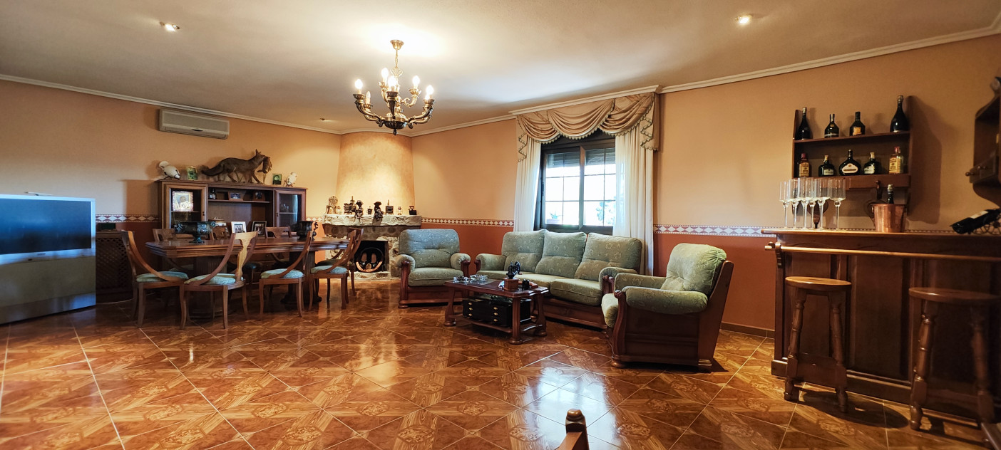 La vivienda principal cuenta con 3 dormitorios con armarios empotrados, 2 baños completos (uno de ellos en suite), un salón independiente con chimenea que aporta calidez y un ambiente acogedor durante el invierno, y una cocina totalmente equipada.