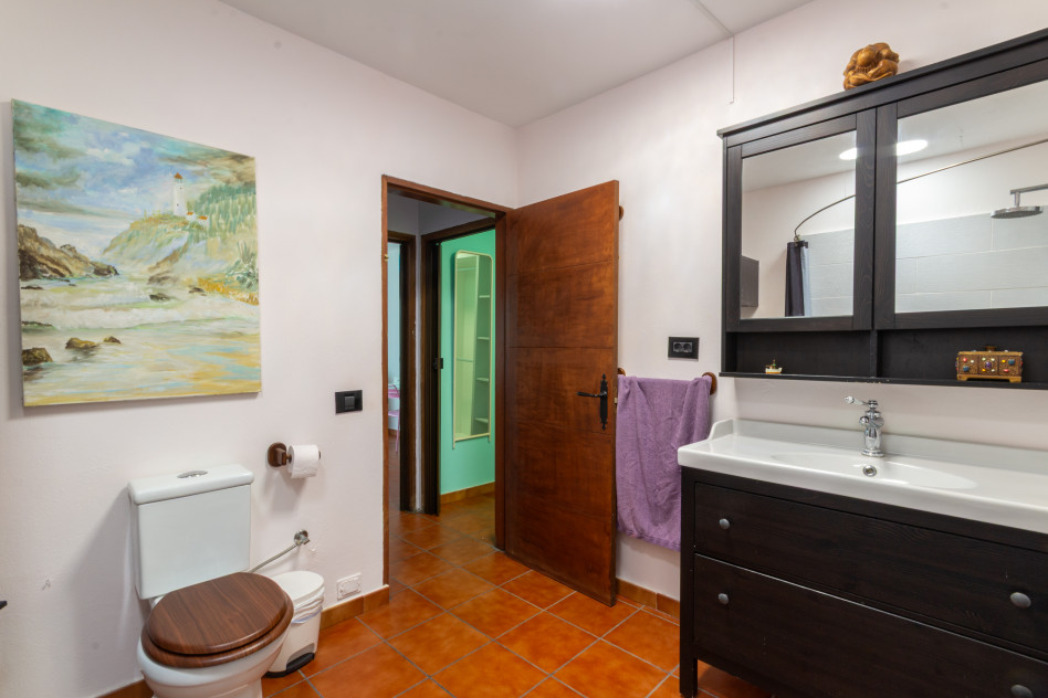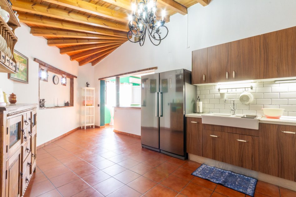 - LOS ARENALES (TELDE) - Muy cerca del Barranco de los Cernícalos, disponemos de esta magnífica casa rústica alzada sobre una parcela de 574m2 y con 233m2 de vivienda construidos (perfectamente registrados). Su estado es excelente, además cabe destacar que la planta principal se encuentra completamente adaptada sin obstáculos, lo que la convierte en una casa muy práctica de cara al futuro. Esta planta cuenta con 129,43m2 y se distribuye en: Amplio salón-comedor, gran cocina independiente semi integrada con un pasador, 2 dormitorios, 2 baños, 1 vestidor y 1 gran trastero... Además, justo a la entrada tenemos el porche y patio-terraza central con su precioso pozo (no real), perfecto para pasar los días junto a familia y amigos. Tanto desde la vivienda como desde este patio central, se puede acceder a la planta sótano (por escaleras) y en ella encontramos: Otro gran salón con cocina integrada que incluye barbacoa y horno tradicional de leña (esta parte está bajo estructura ligera y al no ser de obra no se tiene en cuenta sus m2 como construidos), y desde aquí tenemos acceso tanto a un último bancal rústico con un aseo (en lo que era el antiguo gallinero), como acceso a la parte baja de la vivienda, que cuenta con 92,08m2 y tiene una gran zona diáfana de almacenamiento, un taller, una tercera habitación y un gran trastero. Por último, dispone de acceso a la azotea transitable, donde se encuentra la solana y se puede disfrutar de unas agradables vistas al amanecer y al mar. Una casa muy completa que además cuenta con aire acondicionado, videoportero, ventanas de aluminio, mosquiteras, puerta automática de garaje, internet, alarma y garaje propio para 3 vehículos, siendo el acceso a la misma excepcional, puesto que se acaba de reasfaltar la carretera este mismo año y cualquier vehículo llega hasta la puerta. Perfecta como segunda residencia o incluso como vivienda principal en plena naturaleza, ya que se encuentra ubicada apenas a 15 min del centro de Telde y en sus inmediaciones podemos encontrar todo tipo de servicios, incluido el centro de salud de Lomo Magullo. ¿QUIERE SABER MÁS? ¡NO DUDE EN CONSULTARNOS SIN COMPROMISO ALGUNO!