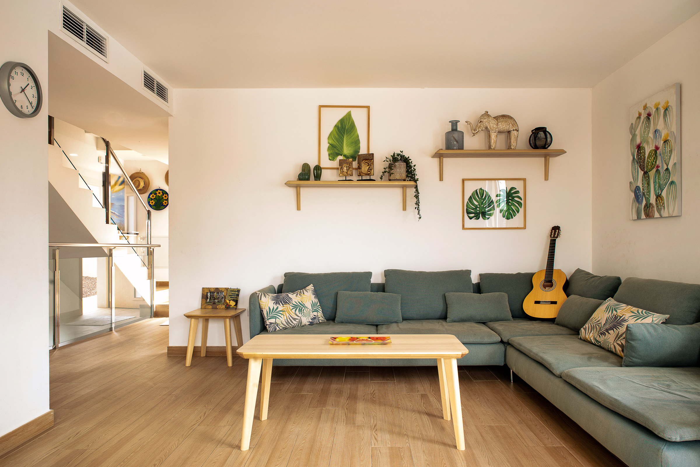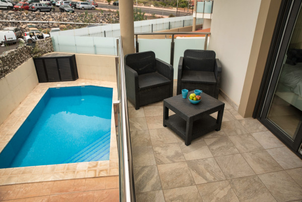 En el exterior, la villa ofrece agradables jardines que rodean la propiedad y una piscina privada, perfecta para disfrutar del excelente clima de la isla durante todo el año y crear un ambiente de relax y privacidad.