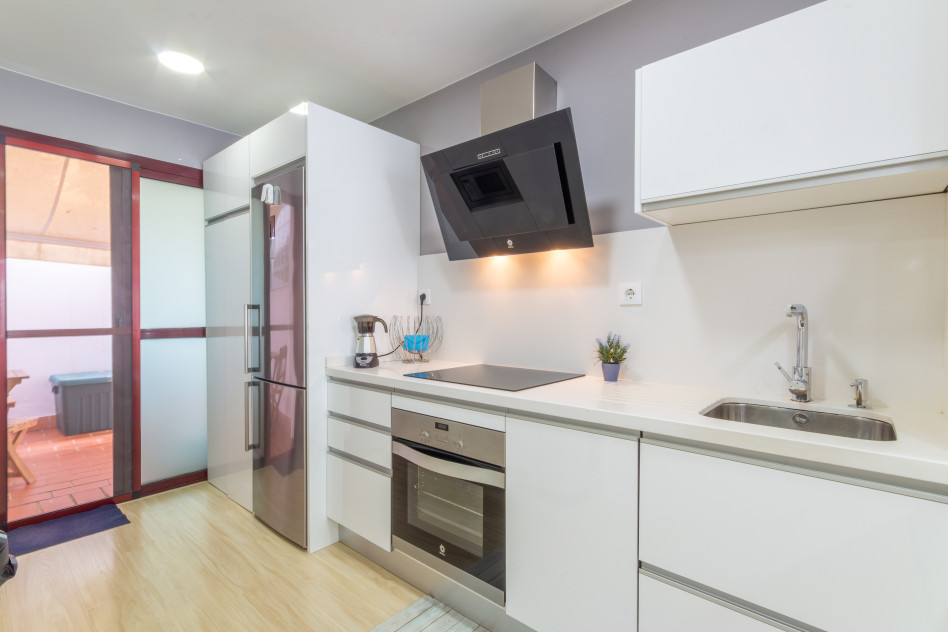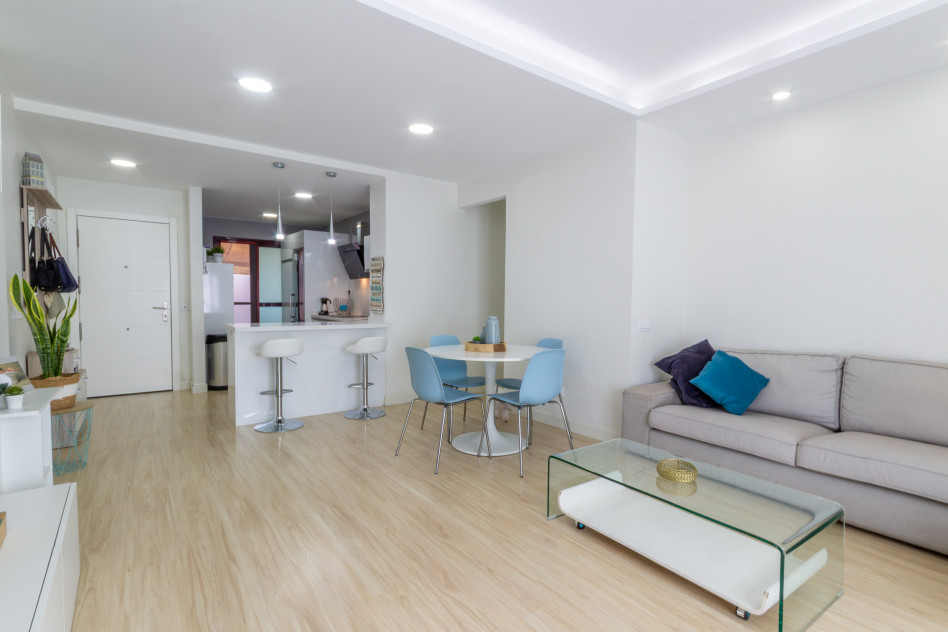 - LA ISLETA (Zona Puerto) - Al fondo de la C/ La Naval, junto a la plaza Manuel Becerra y a un paseo de la Playa de Las Canteras, disponemos de este amplio piso construido en el 2001 y ya completamente reformado con mucho gusto. Tiene 107,81 m2 (89 m2 de vivienda + patio terraza + zonas comunes repercutidas) y se distribuye en: Amplio salón-comedor con cocina integrada tipo península, un gran patio terraza, 3 dormitorios, 1 baño completo y 1 aseo. Lista para entrar a vivir, sin necesidad de hacer reforma alguna y con muy buenas calidades: puerta de seguridad, persianas eléctricas en el salón, tarima flotante, iluminación LED, cocina actual con Silestone, fregadero bajo encimera, dispensador de jabón integrado, pintura lisa, videoportero... Además, en el precio se incluye una plaza de garaje conectada por 2 ascensores. La cuota de comunidad mensual es de 77 €/mes y el IBI anual de 345 €/año. ¿QUIERE SABER MÁS? ¡Contáctenos sin compromiso alguno y visite su futuro hogar!