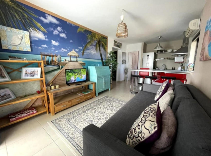La vivienda cuenta con 2 dormitorios, 1 baño completo y amplio, salon-comedor, cocina equipada y amoblada y una agradable terraza, ideal para disfrutar del clima soleado de la zona. Además, dispone de un pequeño trastero, perfecto para almacenaje extra.